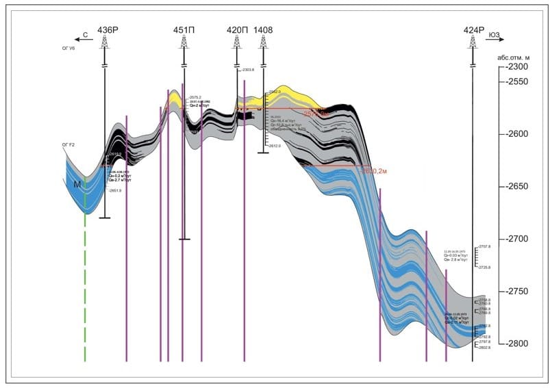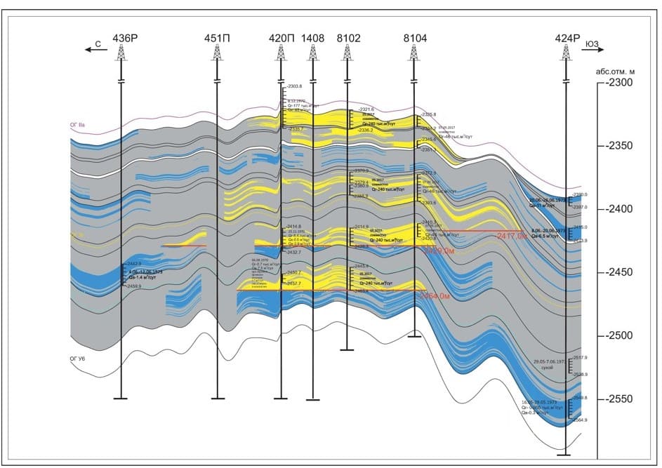- Выделяем и обосновываем зоны замещения и выклинивания продуктивных пластов, литологических экранов выявленных залежей УВ